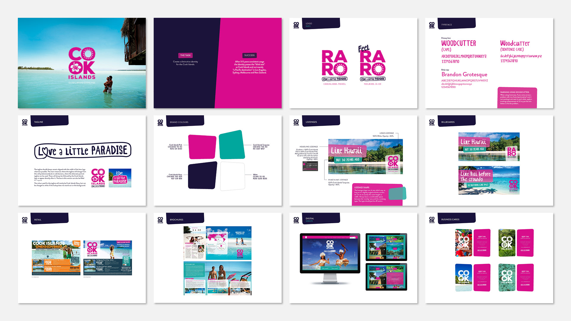 Complete rebrand created for Cook Islands Tourism. Logo, brand book, all media collateral. The client felt their brand was dated and needed to appeal to a wider audience while still capturing the spirit of the people and the essence of the islands. I was lucky enough to work onsite for this project and experienced first hand the warm nature of the locals.